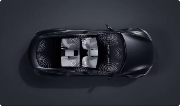 Air vents are hidden throughout the cabin, while tri-zone temperature
